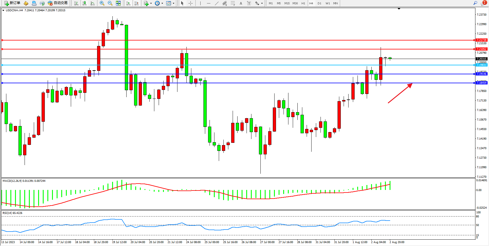备选策略:7.19833下方看跌,目标7.19146 7.18459
