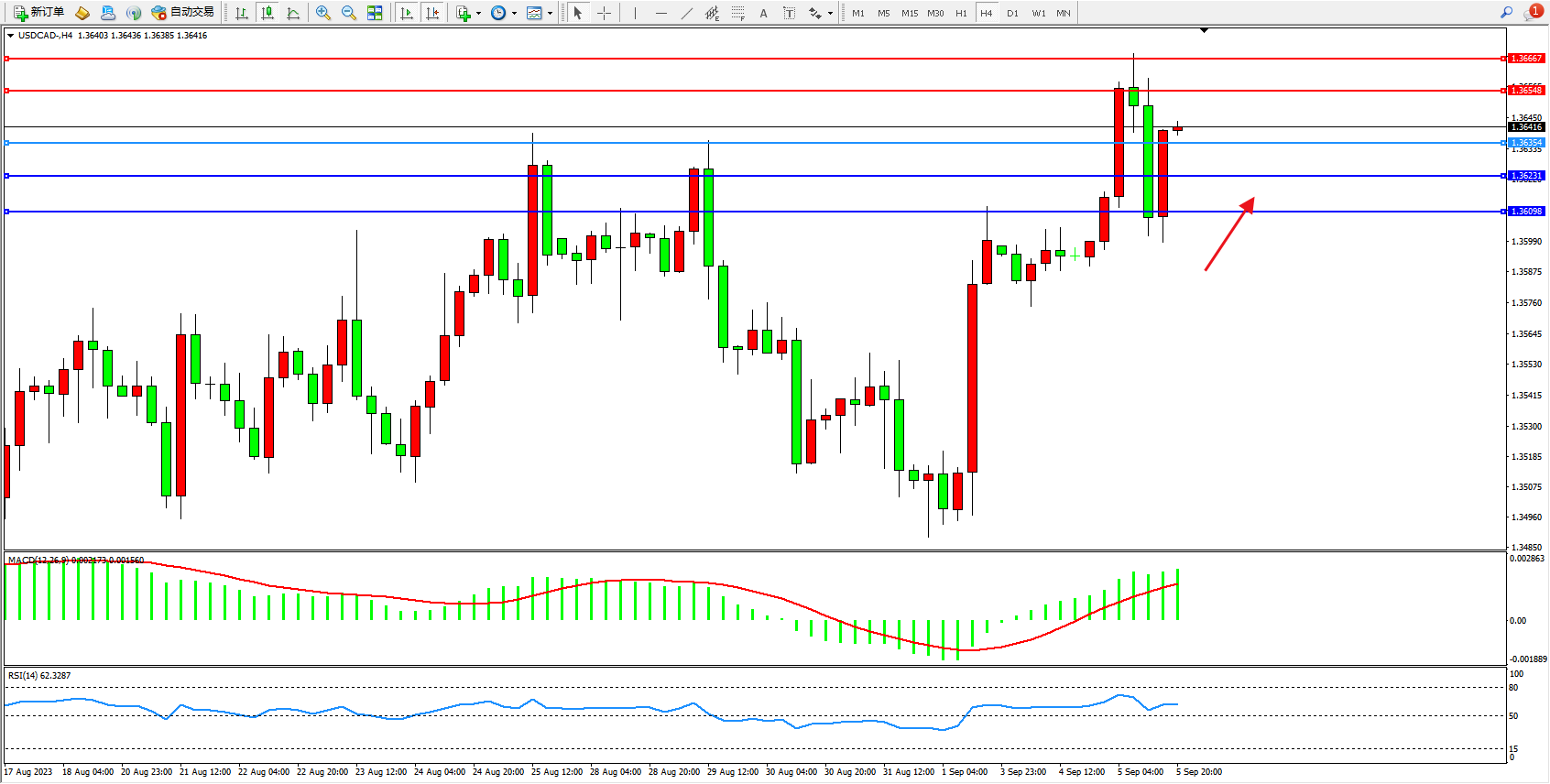 备选策略:1.36354下方看跌,目标1.36231  1.36098