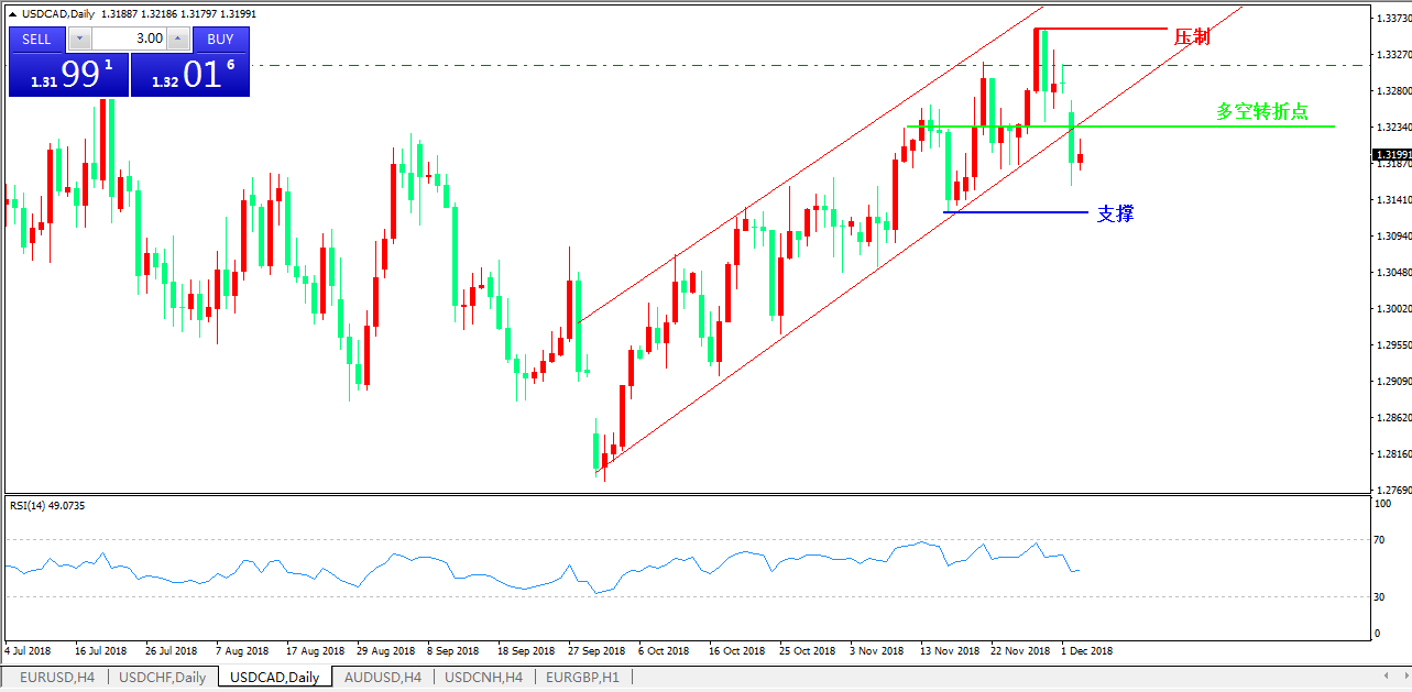 技术面简析:汇价快速击穿上行通道下轨,打开下行空间。