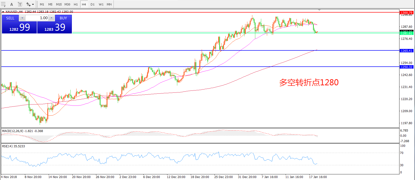 交易策略: 1280.00之下看跌,目标1265.00 1250.00