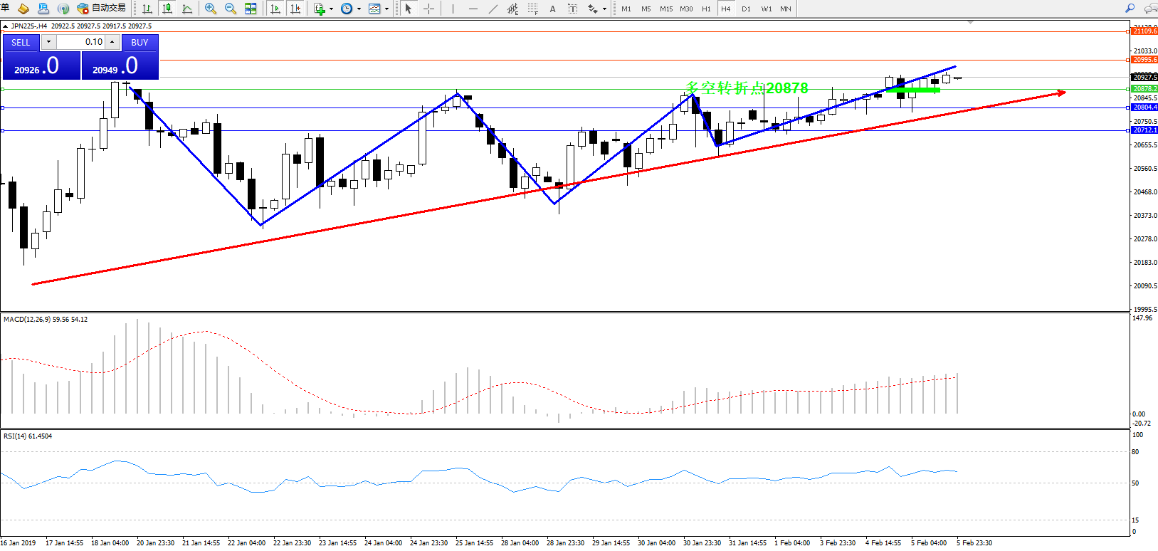 日经指数JPN225——4小时K线图: