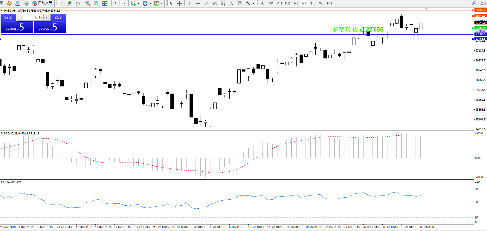上周2月8日正月初四,港股迎来猪年首个交易日,却没能迎来“开门红”,截止当日收盘,恒生指数低开1.01%,早盘一度跌逾1.6%,但随后跌幅持续收窄,尾盘一度翻红。截止收盘,恒生指数跌43.89点,报27946.32点;国企指数跌79.84点,报10956.58点;红筹指数跌39.05点,报4370.56点,大市成交812.75亿港元。