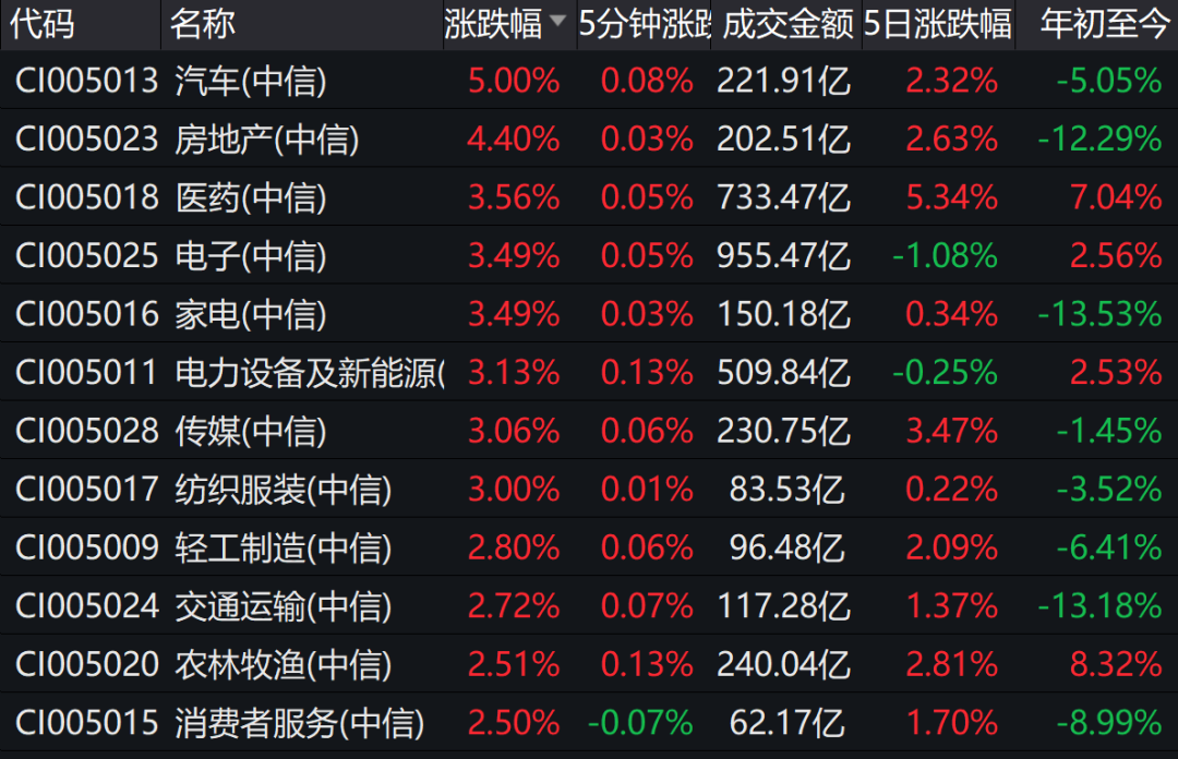 从盘面上看,前期超跌股全线反弹,大消费板块、农业、汽车、医疗器械等板块领涨。从消息面上看,今日汽车股板块领涨,源于各项政策利好不断释放。据悉,北京上半年将释放10万购车指标,杭州汽车限购措施放宽政策出炉 ,广州市提振汽车消费政策实施细则正在抓紧制定。