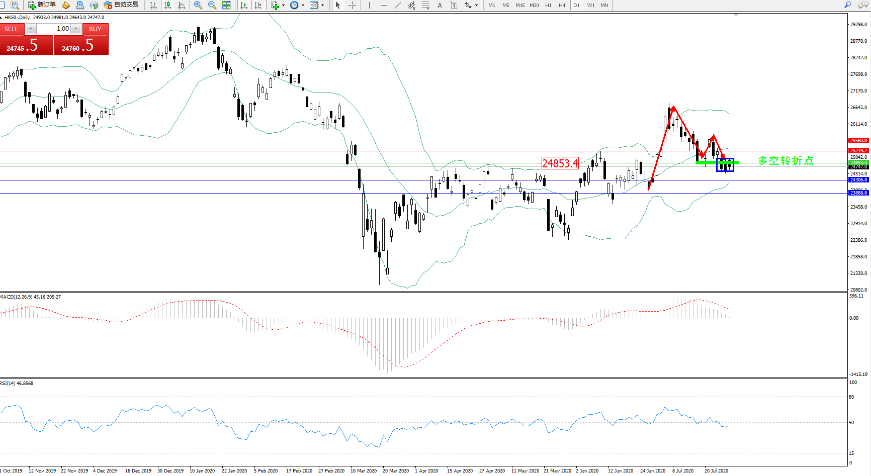 香港恒生指数7月28日(周二)收盘上涨169.50点,涨幅0.69%,报24772.76点;港股三大指数弱势收涨,教育、半导体板块午后涨幅扩大,现货金价与银价回落,黄金及贵金属股跳水,招金矿业大跌超12%,山东黄金跌6.8%;恒指成份股多数上涨,腾讯大涨4.5%,港交所、舜宇、创科实业均升超2%。港股通净买入腾讯(0700.HK)21亿港元,今日南下资金净流入47.28亿港元,大市成交额为1124亿港元。据香港特区政府新闻网,香港特区政府卫生署卫生防护中心28日下午介绍,截至28日零时,香港新增106例新冠肺炎确诊病例,连续7日单日新增过百,其中本地感染98例,输入个案8例。