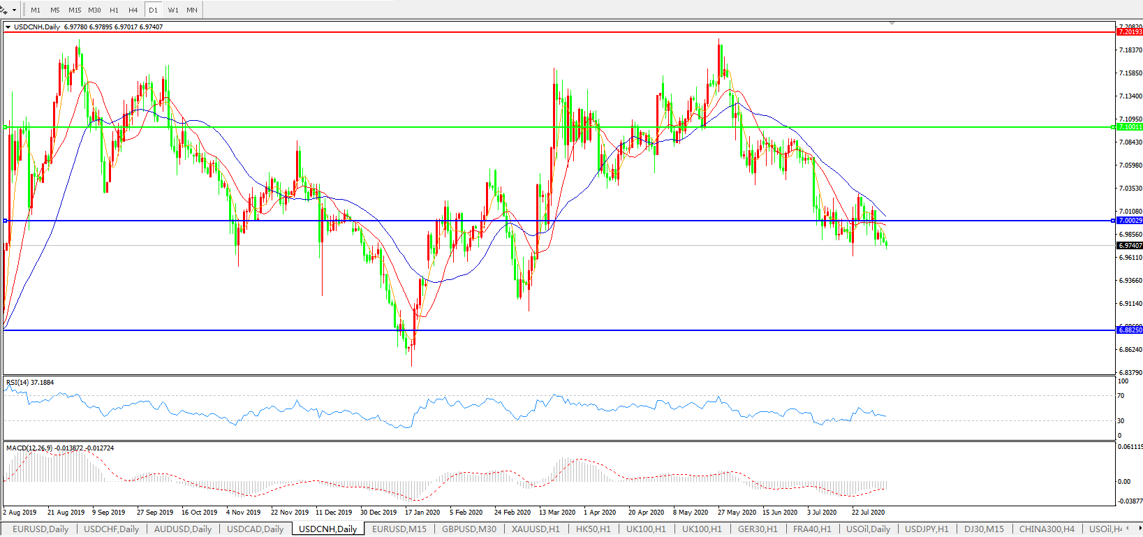 美元兑人民币USDCNH 日线图: