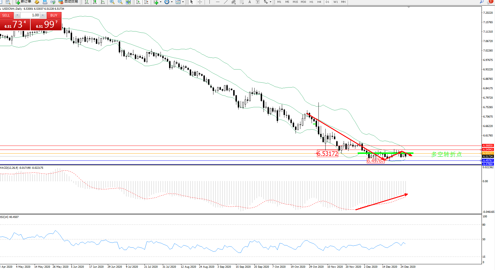 交易策略:6.53172下方看跌,目标6.49767、6.47860