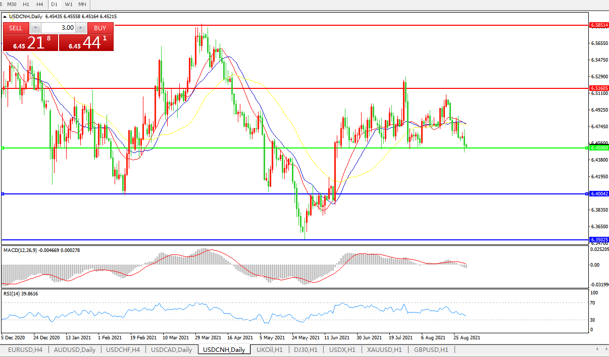 交易策略:在6.4500之下,看跌,目标价位为6.4000,然后为6.3500。