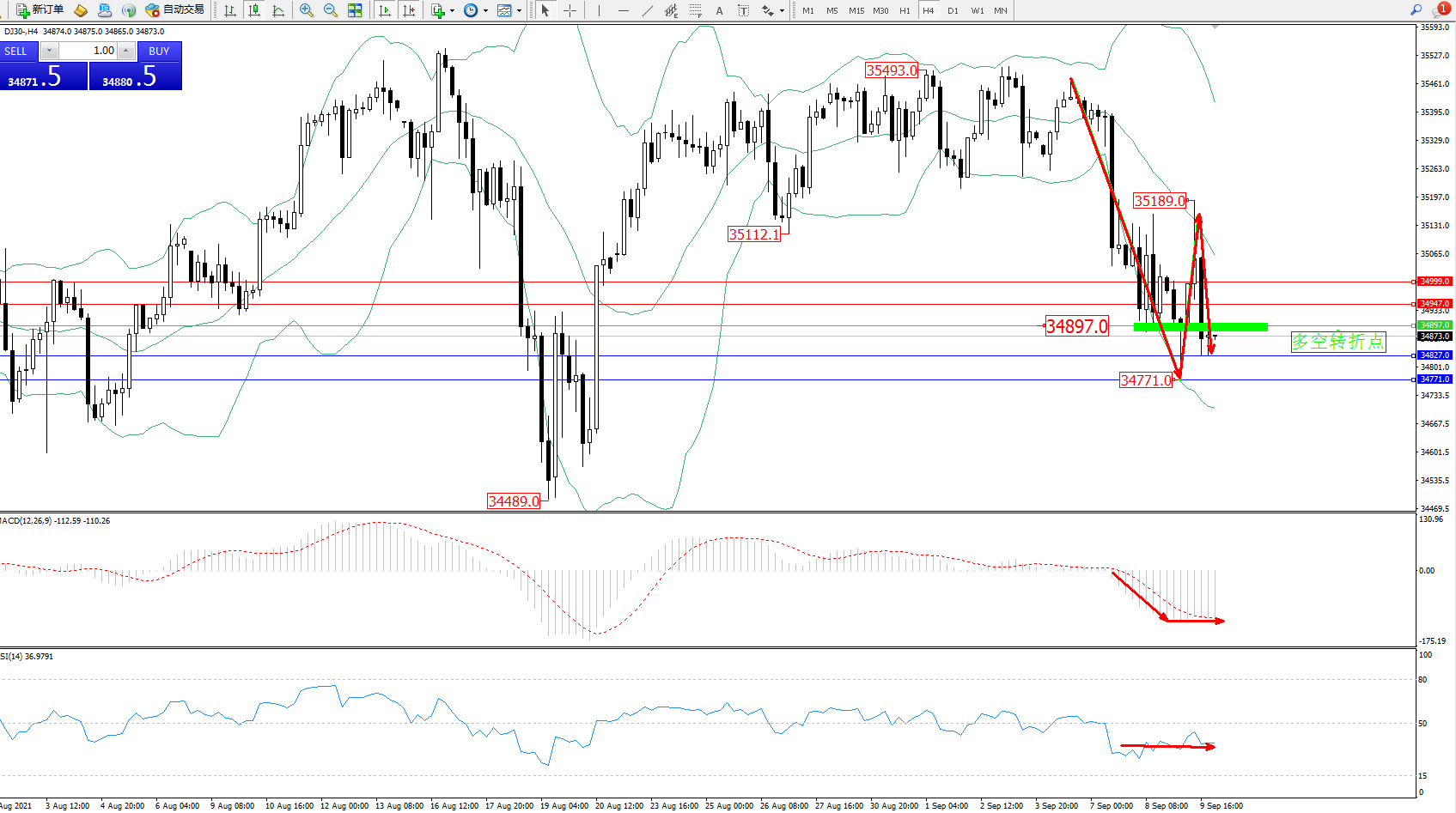 道琼斯指数9月9日(周四)收盘下跌151.23点,跌幅0.43%,报34879.84点;美国股市周四走势动荡,收盘下跌,尽管Covid-19德尔塔变种的扩散破坏了全球增长,但美国经济数据喜忧参半,令投资者对决策机构缩减政策刺激的前景保持警惕。随着劳动力市场继续复苏,美国首次申领失业救济人数降至疫情以来的低点。然而与此同时,越来越多的证据表明,德尔塔变种毒株可能正在阻碍经济复苏,并且更多美国公司对此表示了担忧。