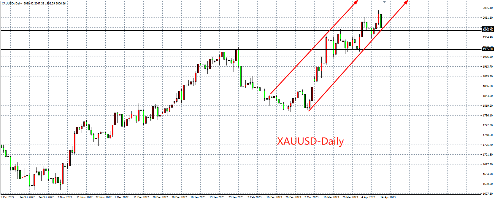 周一(4月10日)因此前非农数据依旧“坚挺”刺激了市场对美联储的加息押注,美指继续大幅上行,黄金跌回2000美元大关之内。