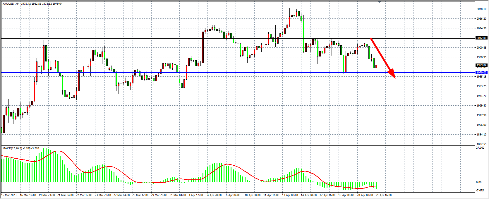 现货黄金XAUUSD 四小时图