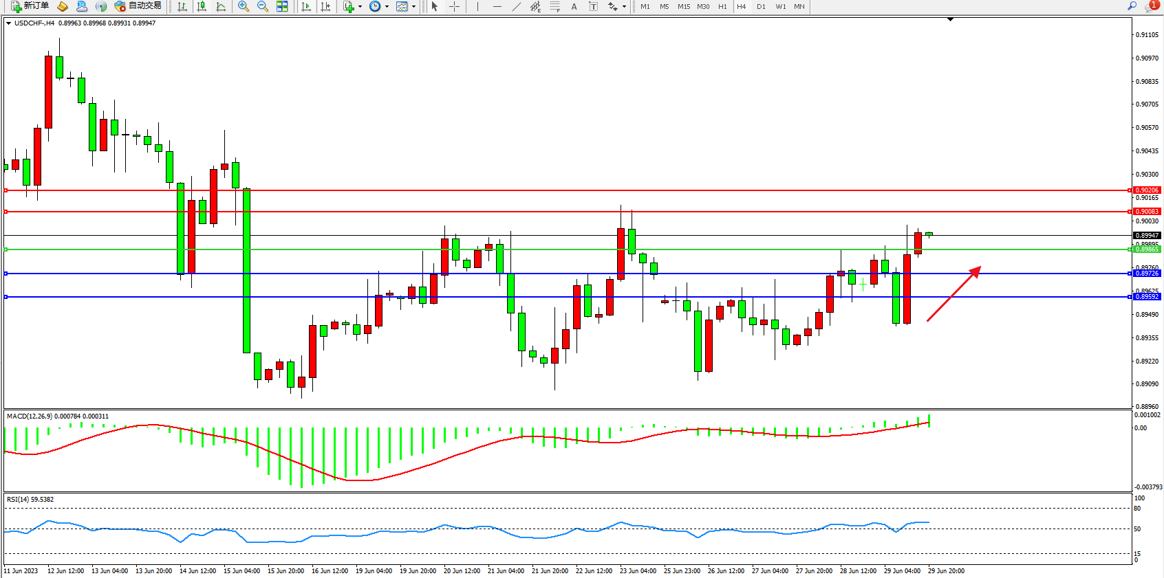 交易策略:0.89865上方看涨,目标0.90083  0.90206